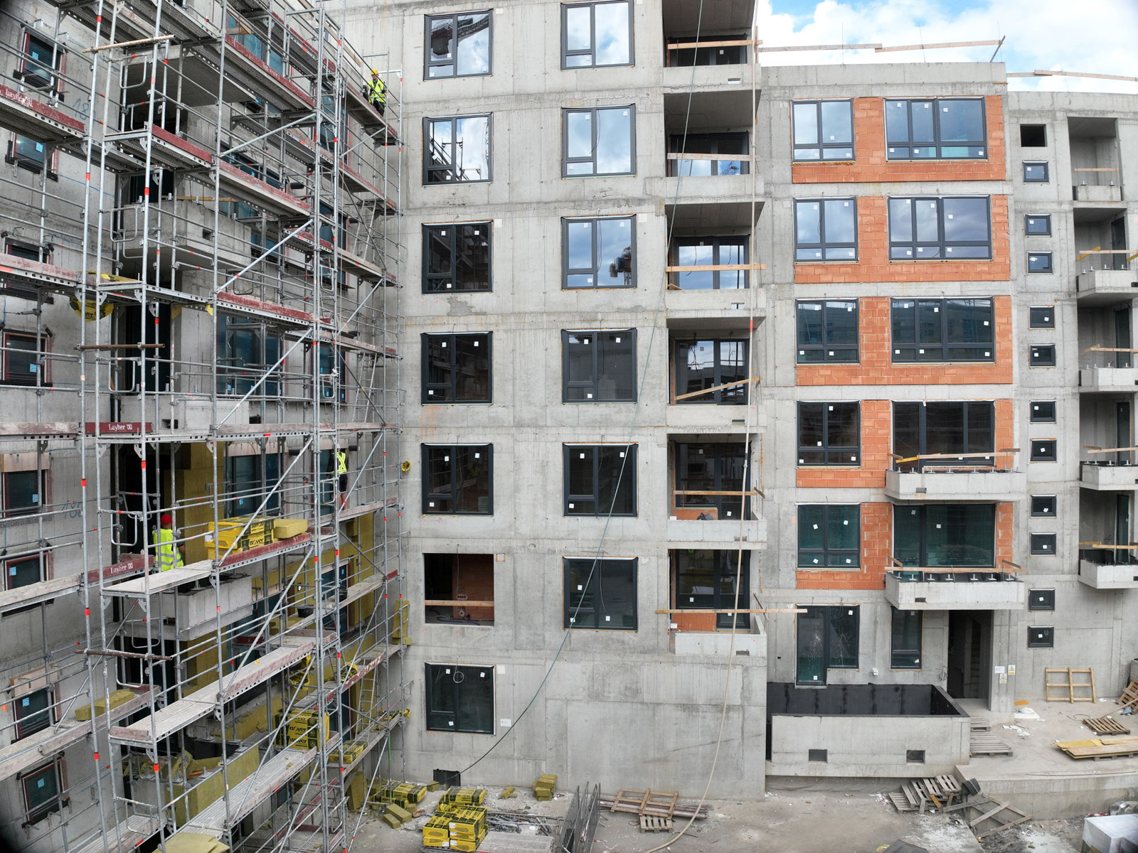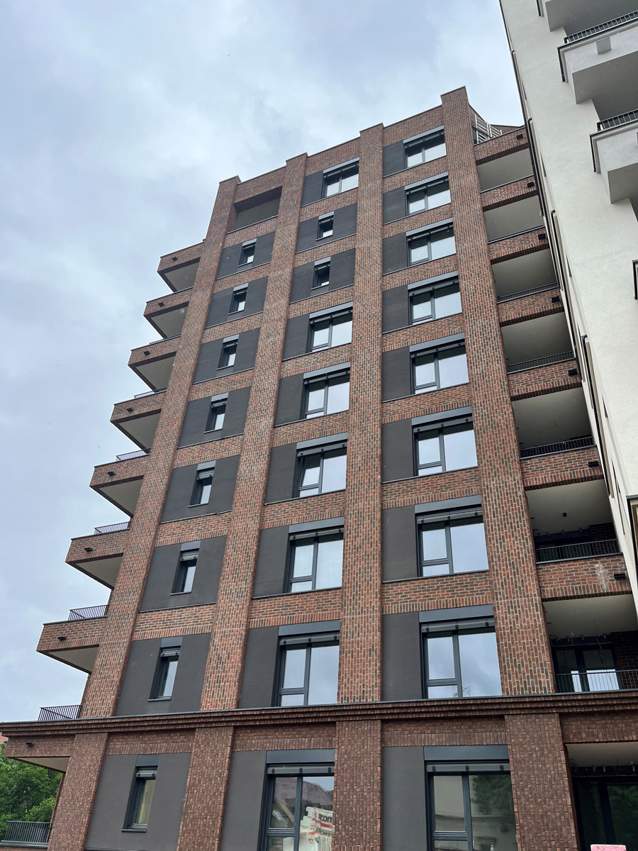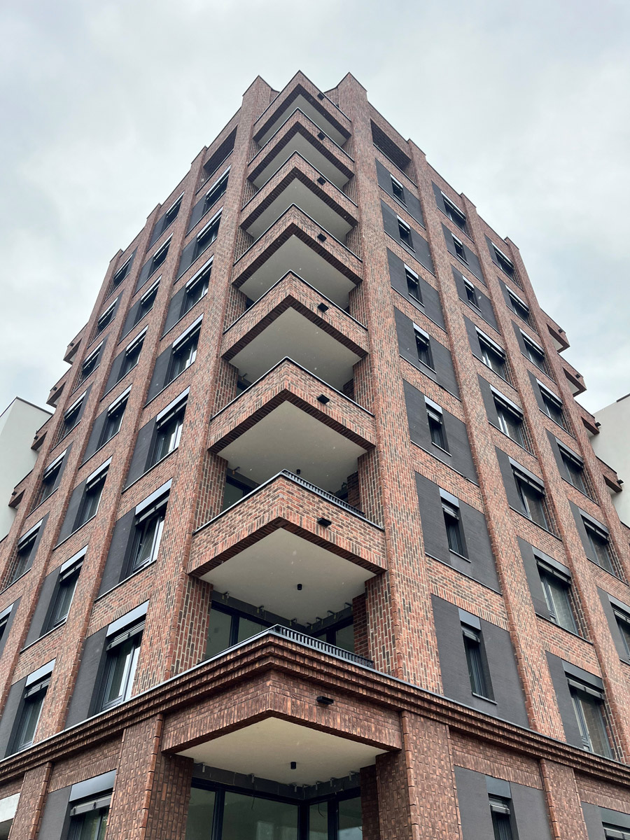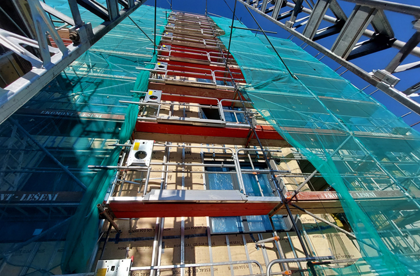 „Při realizaci takto vysokých domů bylo nejdůležitější vyměřit základní horizontální a vertikální osy, a to z důvodu, aby okna byla ve správné vzdálenosti od svislých vystouplých části domů (které navozují charakter sloupů) a aby vodorovné dilatace provětrávané fasády byly provedeny ve správné výšce s ohledem na skladby obkladů z klinkeru a okenních parapetů,“ říká jednatel společnosti Inter Gips, s.r.o. Ing. Petr Pume a dodává: