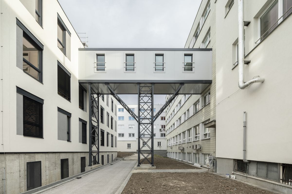 „Když mi začátkem ledna 2020 zavolal majitel nemocnice s tím, že chce letos přistavět a otevřít další křídlo nemocnice, a ptal se mne na možnost dostavby modulárním systémem a mé zkušenosti nebo povědomí o firmě KOMA MODULAR, moje stanovisko bylo kladné a doporučující,“ uvádí začátek celého příběhu autor projektu přístavby Jan Beneš z petit atelier.