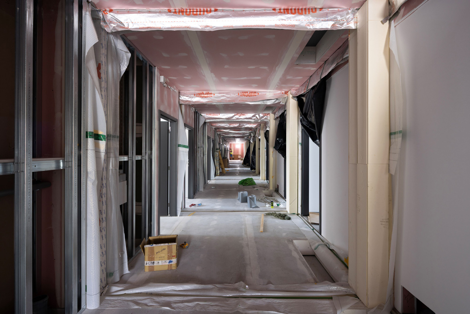 Na velkých otevřených plochách (restaurace, recepce a další prostory), které KOMA MODULAR opravdu umí a dokázala to už na řadě jiných projektů (např. 4* hotel LE RELAIS DE LA MALMAISON u Paříže nebo Český pavilon na světové výstavě EXPO 2015 v Miláně) bude v případě polyfunkčního komplexu v Letňanech podlahovou krytinou velkoformátová dlažba o rozměrech 600 x 1200 mm. To vyžaduje použití podlahové konstrukce, která odolá vysokému soustředěnému i rovnoměrnému zatížení. Proto jsou součástí modulů podlahové systémy fermacell® 2E 22, tvořené dvěma deskami fermacell® tl. 12,5 mm a celoplošně prolepení třetí vrstvou sádrovláknitých desek fermacell® tl. 10 mm.
