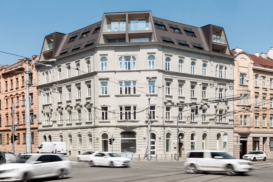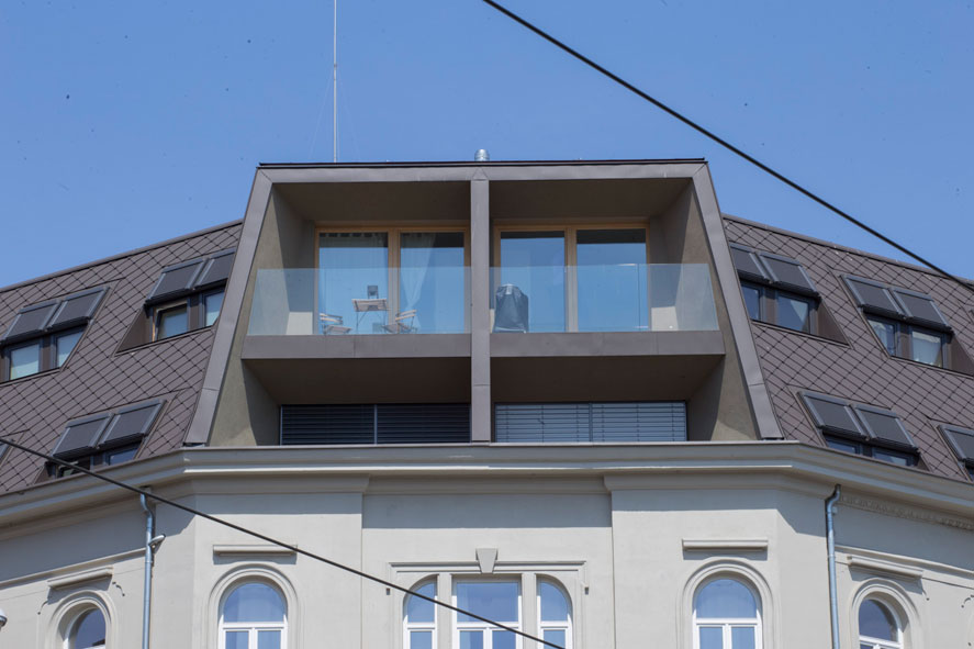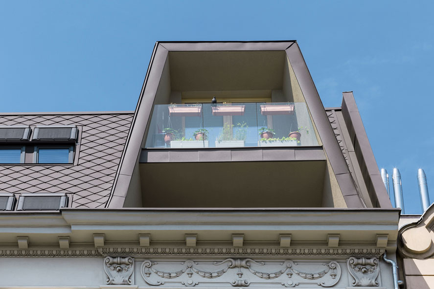 Historický výraz domu zůstal zachován, originální je konstrukční řešení nástavby