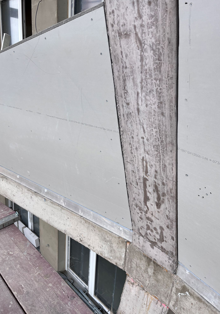 „Základem byla ocelová konstrukce, která byla „obalena“ formou oboustranného opláštění a pásků desek fermacell® Powerpanel H2O po obvodu. Tyto desky pak slouží jako nosič pro omítkový systém Baumit. Nebylo to jednoduché, naopak, ve fázi projektu a realizace jsme museli řešit řadu detailů, ale díky výborné spolupráci s firmami ALIA SYSTEM a VAŠSTAV se vše podařilo k plné spokojenosti investora a generálního dodavatele stavby,“ říká David Švábenský, technický konzultant společnosti James Hardie Europe.
