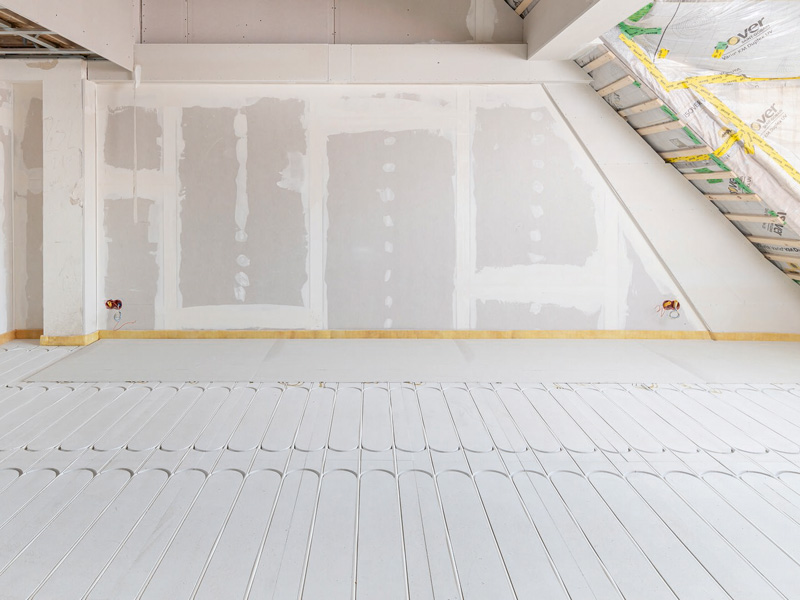 TM od společnosti James Hardie, který kombinuje vrstvu pro rozložení zatížení a podlahové vytápění v jednom systému. Díky hmotnosti 27 kg/m² nevznikly žádné statické problémy. K tomu se přidává bezpečnost v oblasti požární ochrany (nehořlavé, třída reakce na oheň A2 podle ČSN EN 13501-1).