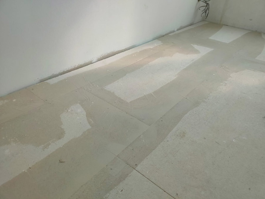 „Později jsme skladbu změnili a namísto podlahových prvků fermacell 2 E 22, tvořených dvěma podlahovými deskami fermacell 12,5 mm a dřevovláknitou deskou 20 mm jsme do skladby zařadili podlahové prvky fermacell® 2 E 33 a vyrovnávací podsyp fermacell®. Podlahové prvky fermacell 2 E 33 tvoří dvě sádrovláknité desky fermacell 12,5 mm a nakašírované dřevovláknité desky tloušťky 10 mm. Akusticky nám skladba stále vycházela a díky této změně se zjednodušila pokládka, protože namísto tří vrstev (našich podlahových prvků, dřevovláknitých desek a podsypu se pokládají pouze dvě vrstvy (vyrovnávací podsyp fermacell v tloušťce 35 až 55 mm a podlahové prvky fermacell® 2 E 33 v tloušťce 35 mm),“ říká Ing. Radomír Dvořák.