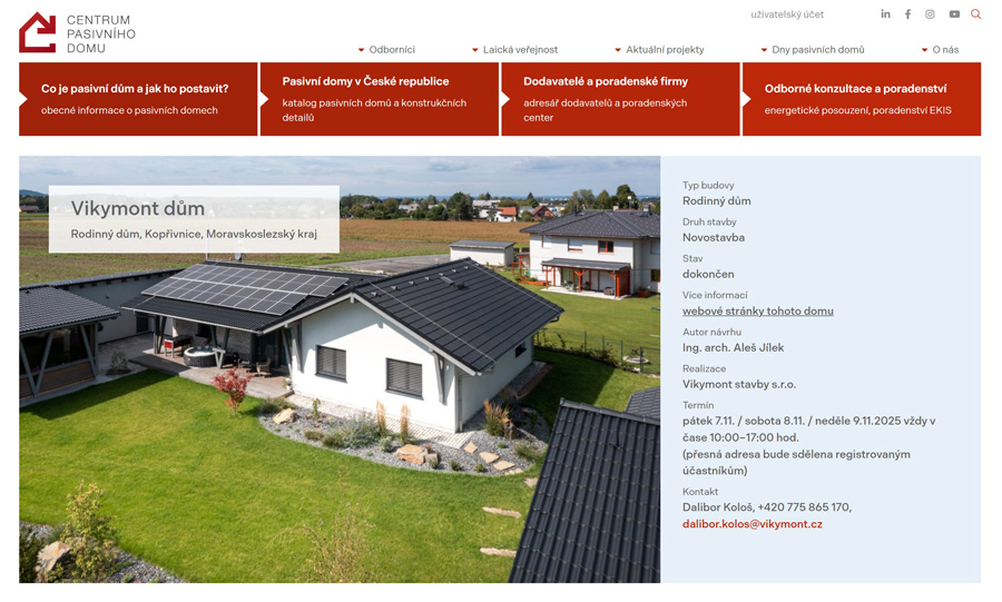 Dny pasivních domů jsou každoroční osvětová akce zaměřená na moderní, úsporné a zdravé bydlení. V České republice ji pořádá Centrum pasivního domu ve spolupráci s dalšími partnery z oblasti udržitelné výstavby. Letos se jí ve dnech 7. – 9. listopadu 2025 (vždy od 10:00 do 17:00 hod.) aktivně účastní i kopřivnická společnost VIKYMONT stavby s.r.o., která při stavbě svých dřevostaveb využívá sádrovláknité desky fermacell®.