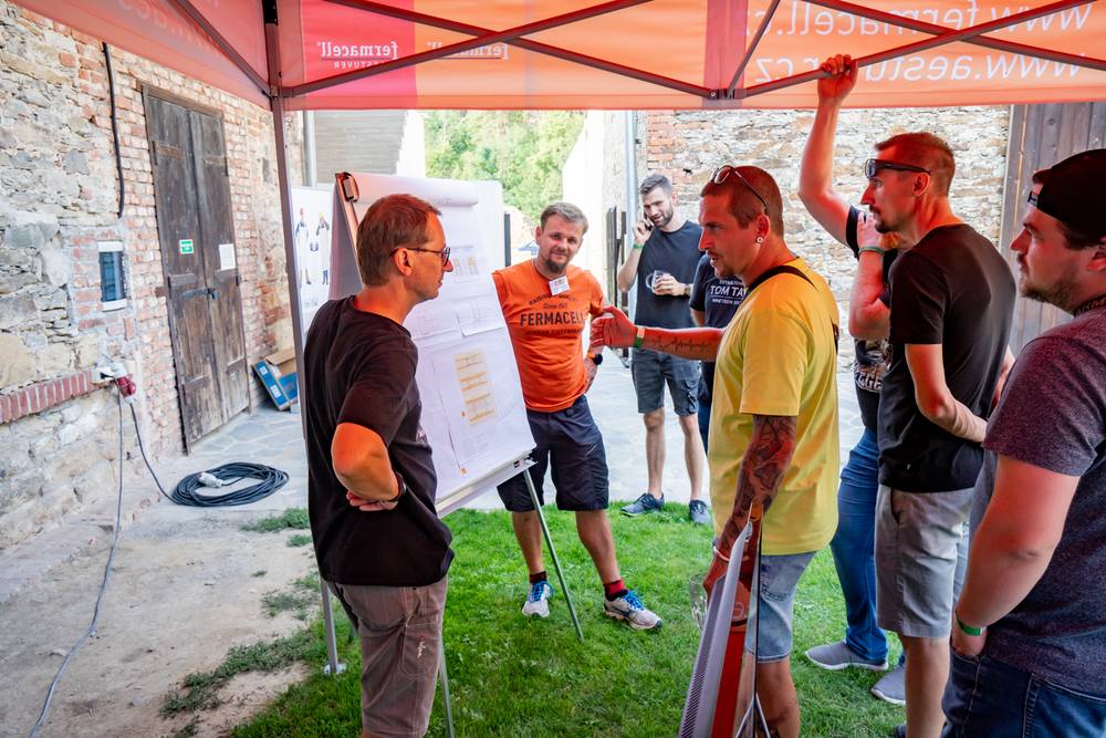 Po workshopech tým James Hardie Europe připravil turnaj – dráhu, na které jednotlivé týmy na čas kutáleli pneumatiku a zvládali tři úkoly, spojené s materiály fermacell