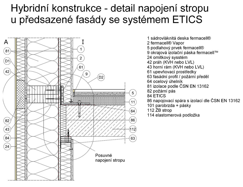 dřevěných konstrukcí se v posledních letech stále více prosazuje hybridní metoda dřevostaveb, zejména u vícepodlažních staveb. Cíleně se zde využívají výhody masivní a dřevěné konstrukce, opláštěné sádrovláknitými deskami fermacell®. Nosný železobetonový skelet nabízí výhody z hlediska statiky a zvukové izolace, dřevěné rámové stěny poskytují velmi dobré energetické vlastnosti a výhodu prefabrikace. Při stejných energetických vlastnostech jsou navíc štíhlejší než masivní stěnové prvky a získávají tak plusové body za prostorový zisk. Výhodou je také vysoká míra flexibility půdorysu, a to nejen při projektování novostavby, ale také s ohledem na pozdější změny a přestavby.