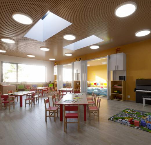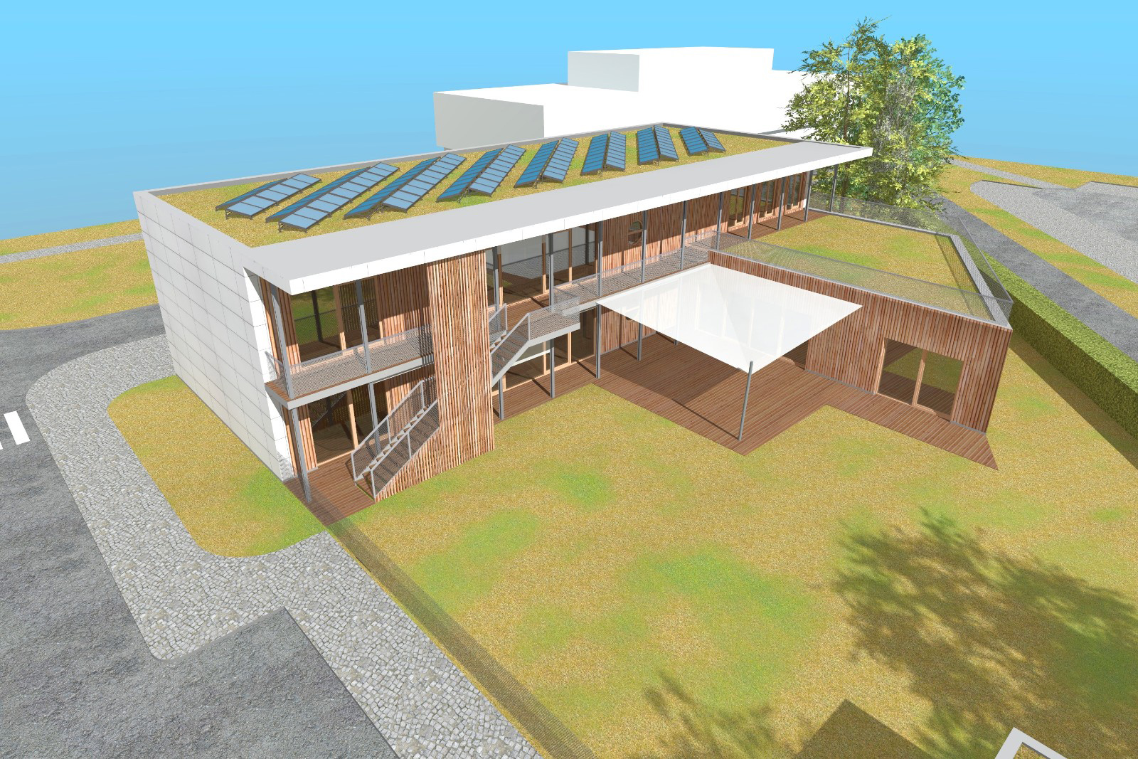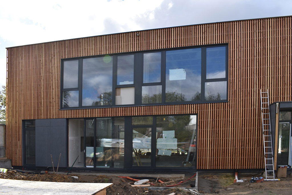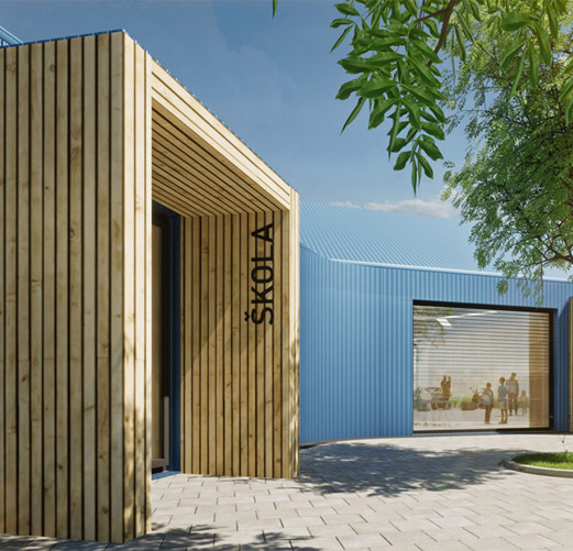 Moduly KOMA MODULAR, z nichž je novostavba postavena, jsou opláštěny sádrovláknitými deskami fermacell®, kromě stěnových konstrukcí je zde suchý stavební systém fermacell® přítomen i v podobě podlahového vytápění fermacell® Therm25™.